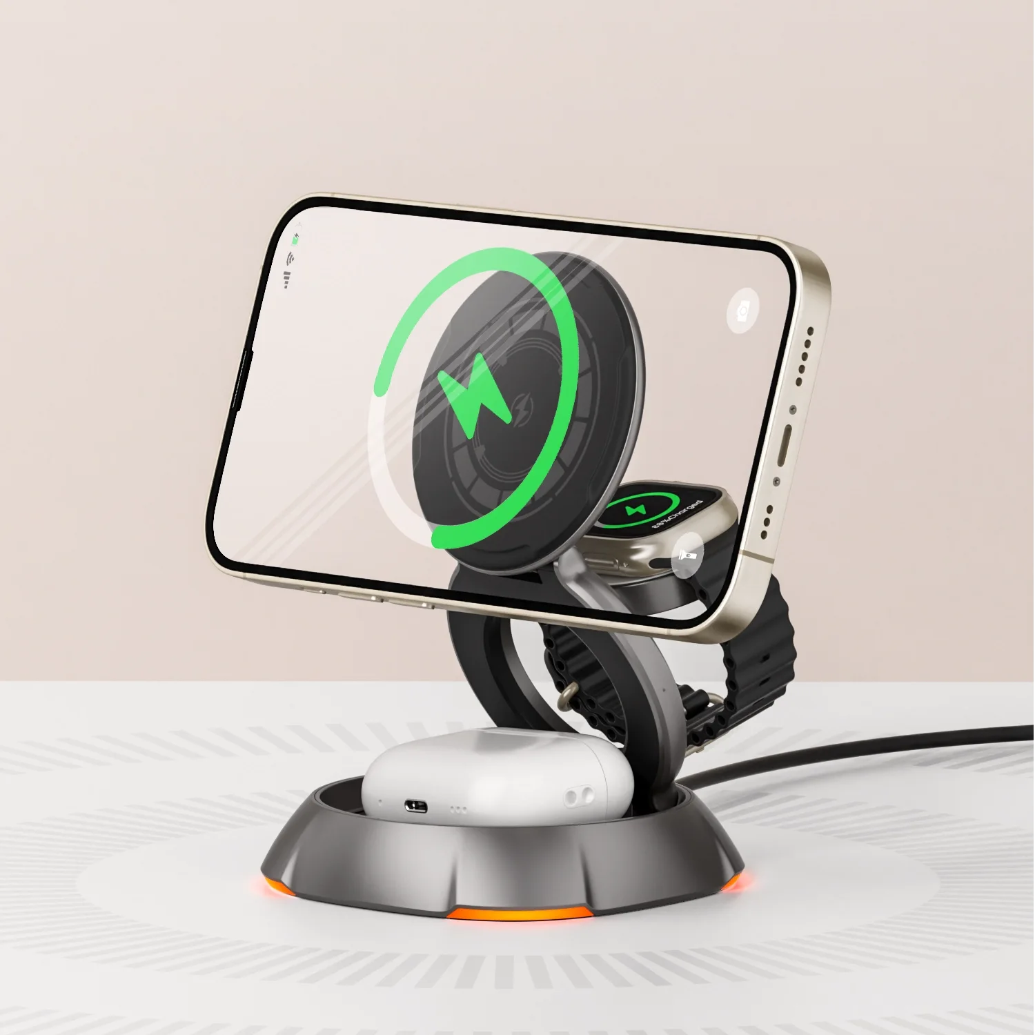 Compatible with MagSafe iPhone 15/14/13/12 series, AirPods Pro/3/2, and Apple Watch (Ultra and Series 1–8). Keep every device powered while reducing desk or nightstand clutter.