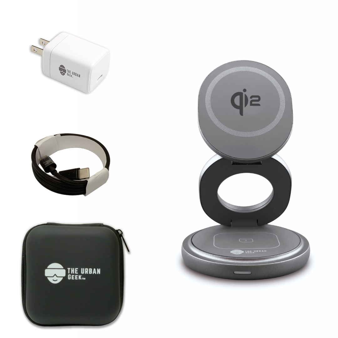 Built with premium materials and advanced safety protections, The Urban Geek 3-in-1 folding wireless charger delivers fast, safe, and dependable charging wherever life takes you.