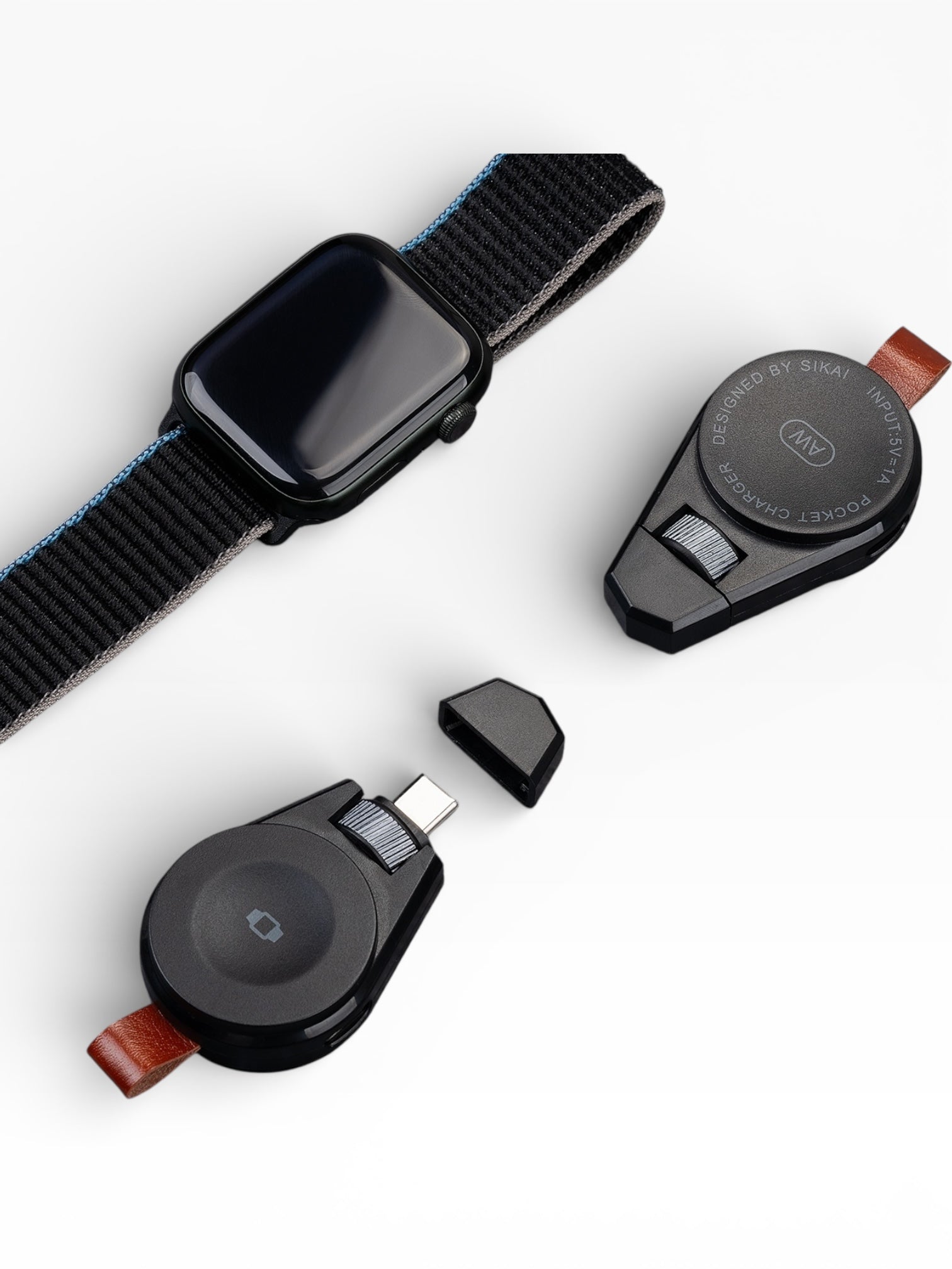 A compact magnetic watch charger that clips, packs, and powers up your smartwatch wherever life takes you — desk, bag, or backcountry.
